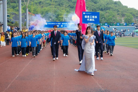 启航新征程,健康向未来。5月15日上午,贵州交通职业大学第一届体育健康运动会正式开幕。学院党委副书记刘正发、副院长田兴强、纪委书记张启建、副院长詹黔江出席开幕式。