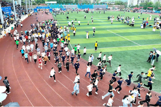 随后,“逐梦通途”阳光校园跑正式开启,随着发令枪声响起,师生队伍从起跑线出发,在春日的校园跑道上绽放出蓬勃朝气。