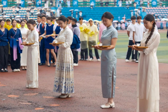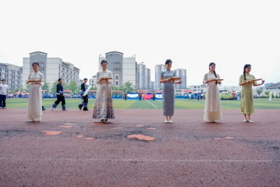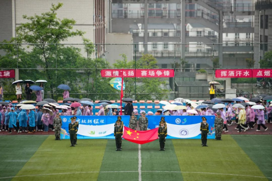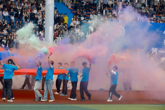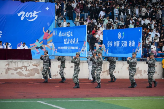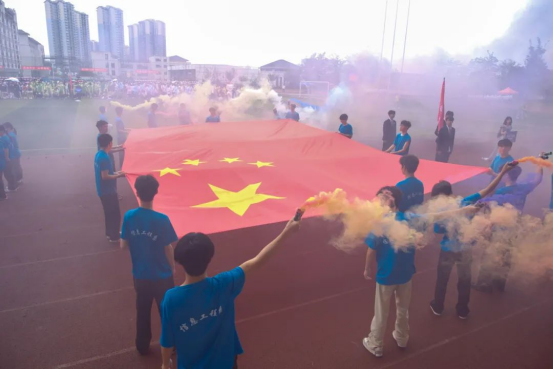入场仪式上,国旗队、校旗队、会旗队、会徽队、标语队、表演方队、教职工代表队、裁判员代表队、新征连学生代表队、国际教育部留学生代表队、各系部代表队迈着整齐的步伐、喊着响亮的口号依次入场。开幕式在庄严的升旗仪式中拉开帷幕。