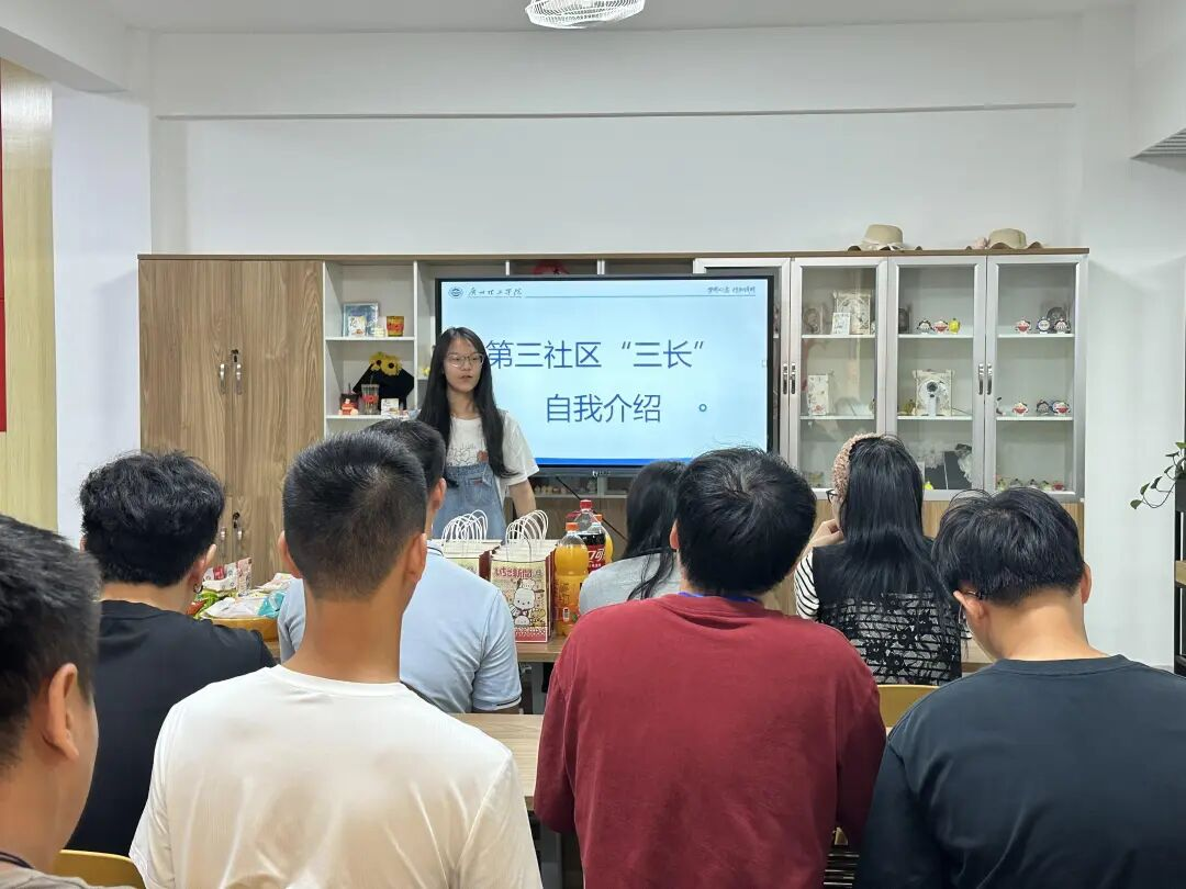 2025年10月16日晚上,第三社区“三长”见面会暨9月工作总结联席会议于第一社区活动室如约举行。会议由两位社区长朱科畅和陈春燕主持,第三社区辅导员莫朗老师、宿管员及第三社区全体“三长”出席,共建美好和谐社区新篇章。