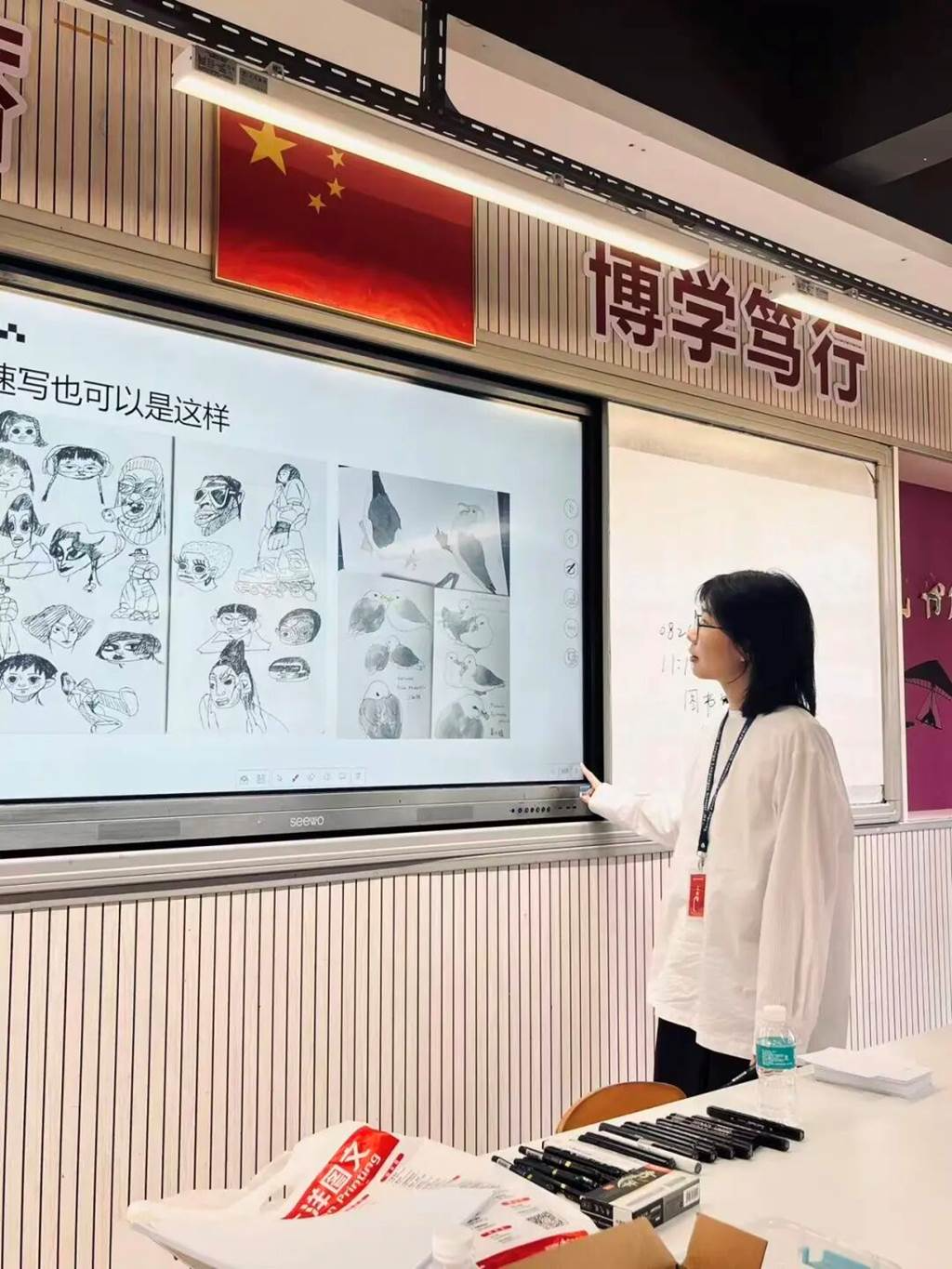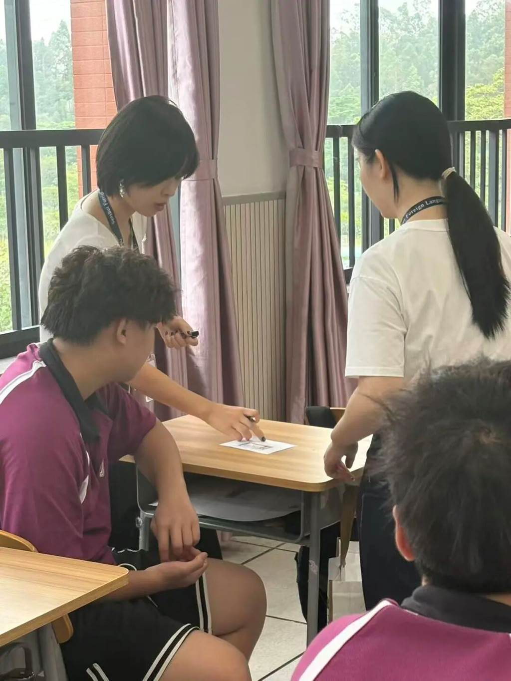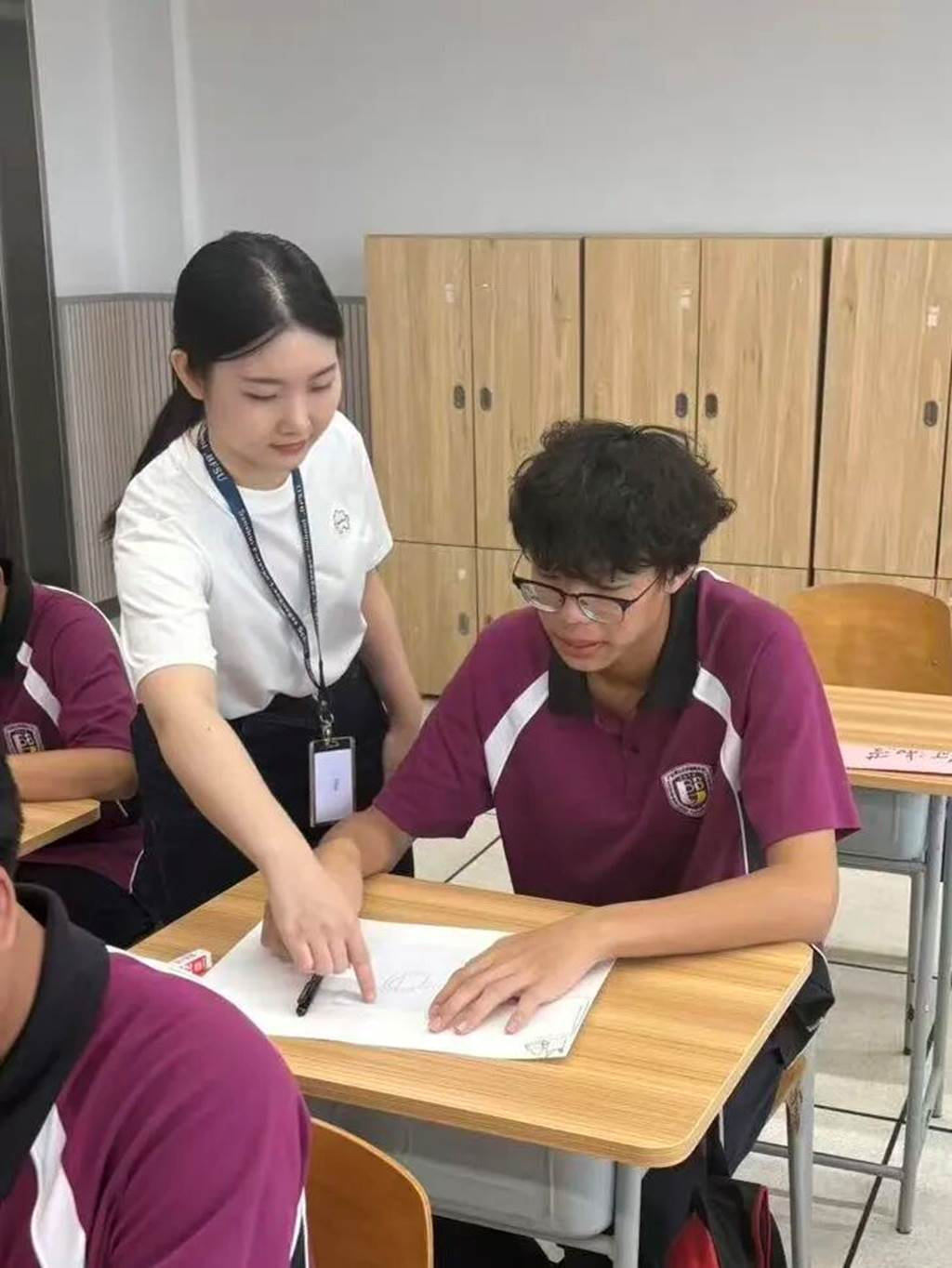 张雨霏、刘程剑与郭瀚文同学聚焦“激发学生创新思维”的培养目标,为北博德翰外国语学校初高中新生分别设计了个性化美术教学活动。初中部开展拼贴创作,学生用各种素材表达自己的感受;高中部侧重速写教学,从基础技巧教起,带领学生写生身边的事物。课程兼具互动性与趣味性,助新生掌握创作方法,也为两校艺术教育合作奠基。