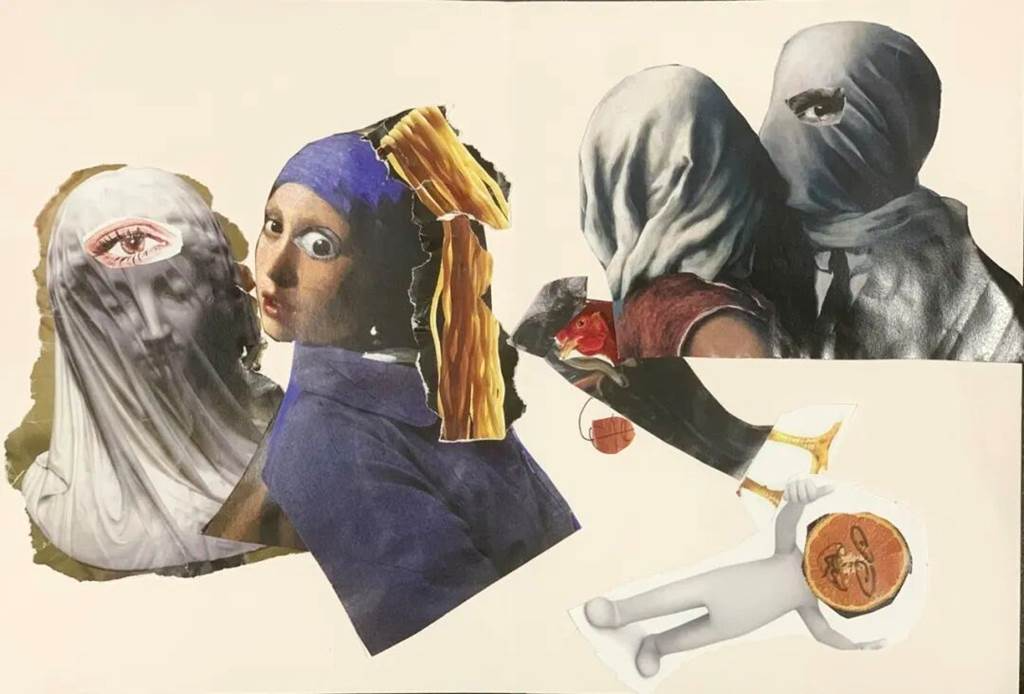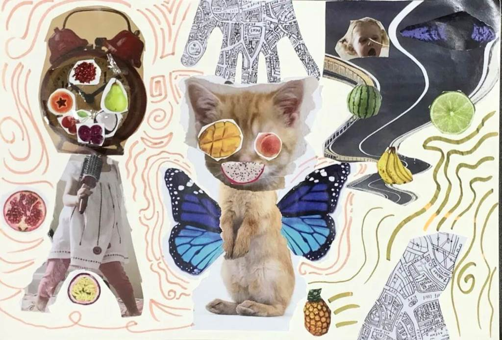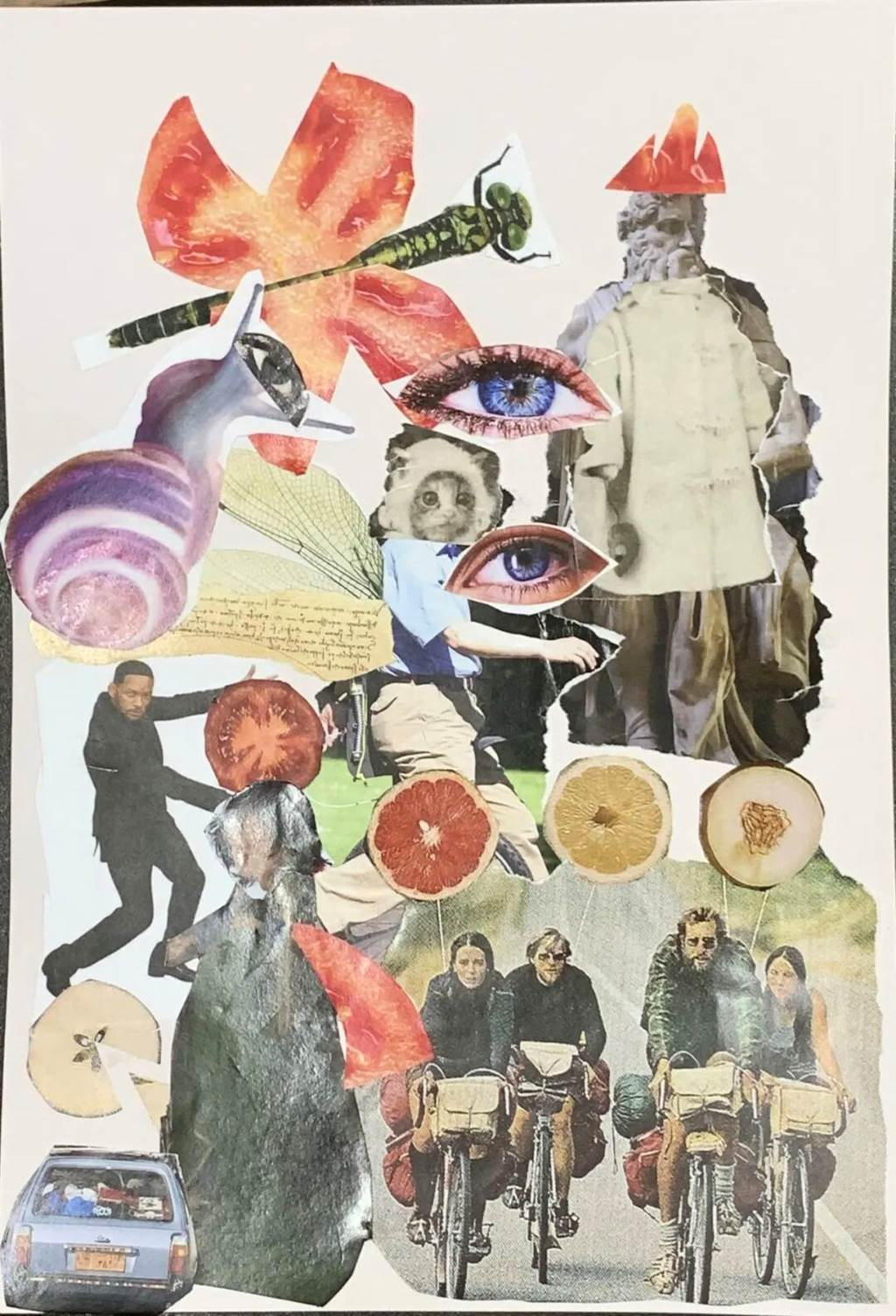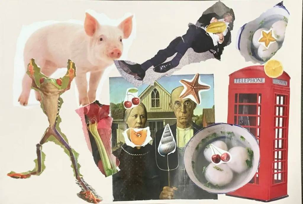在她们数日的拼贴课程指导下,初中部新生灵感迸发,产出了众多充满巧思的作品。每幅作品都承载着独特的青春视角与创意。