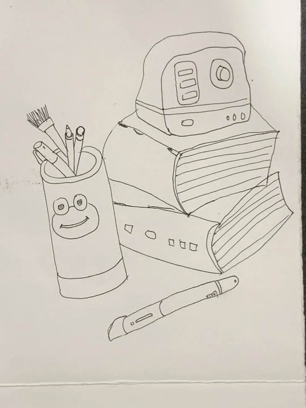 高中部新生则用流畅线条勾勒出产品、绿植、书籍等画面,将对生活的观察与感知凝于笔端,每幅作品都尽显细腻视角与青春活力。