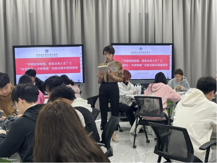 阅读致知辅导员工作室负责人刘茜带领着同学们来到马克思主义教学部VR虚拟仿真思政实训实践基地,开展“红色黔行·书香铸魂”沉浸式剧本阅读活动,现场由马克思主义教学部教师邹丽、吴瑶分别向同学们分享了阅读《为什么是中国》和《长征》两本书籍的所思所悟,精彩的分享交流不时引起情感共鸣,带领现场同学们享受了一场阅读盛宴。