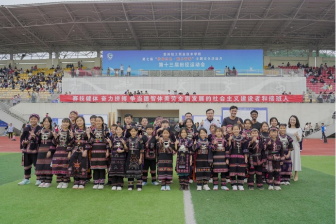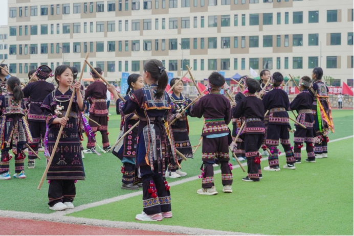 5月14日,伴随着贵州轻工职业技术学院第七届“传承红色·魅力青春”主题文化活动月暨第十三届田径运动会的正式开幕,瑶麓民族小学小学生们带来的青瑶打猎舞跳响运动场的每个角落。青瑶打猎舞是贵州省非物质文化遗产,源自古老的狩猎生活,舞者手持道具,模拟狩猎场景,动作刚劲有力,节奏明快,生动展现了青瑶人勇敢、坚韧、团结的精神。瑶麓民族小学聚焦青瑶文化保护,组建专家团队抢救濒危非遗,融入日常大课间活动中,培育青少年传承队伍。孩子们将舞蹈的每个节奏和每个动作演绎得淋漓尽致,他们用自己独特的方式生动表达了对幸福美好生活的向往和赞美。