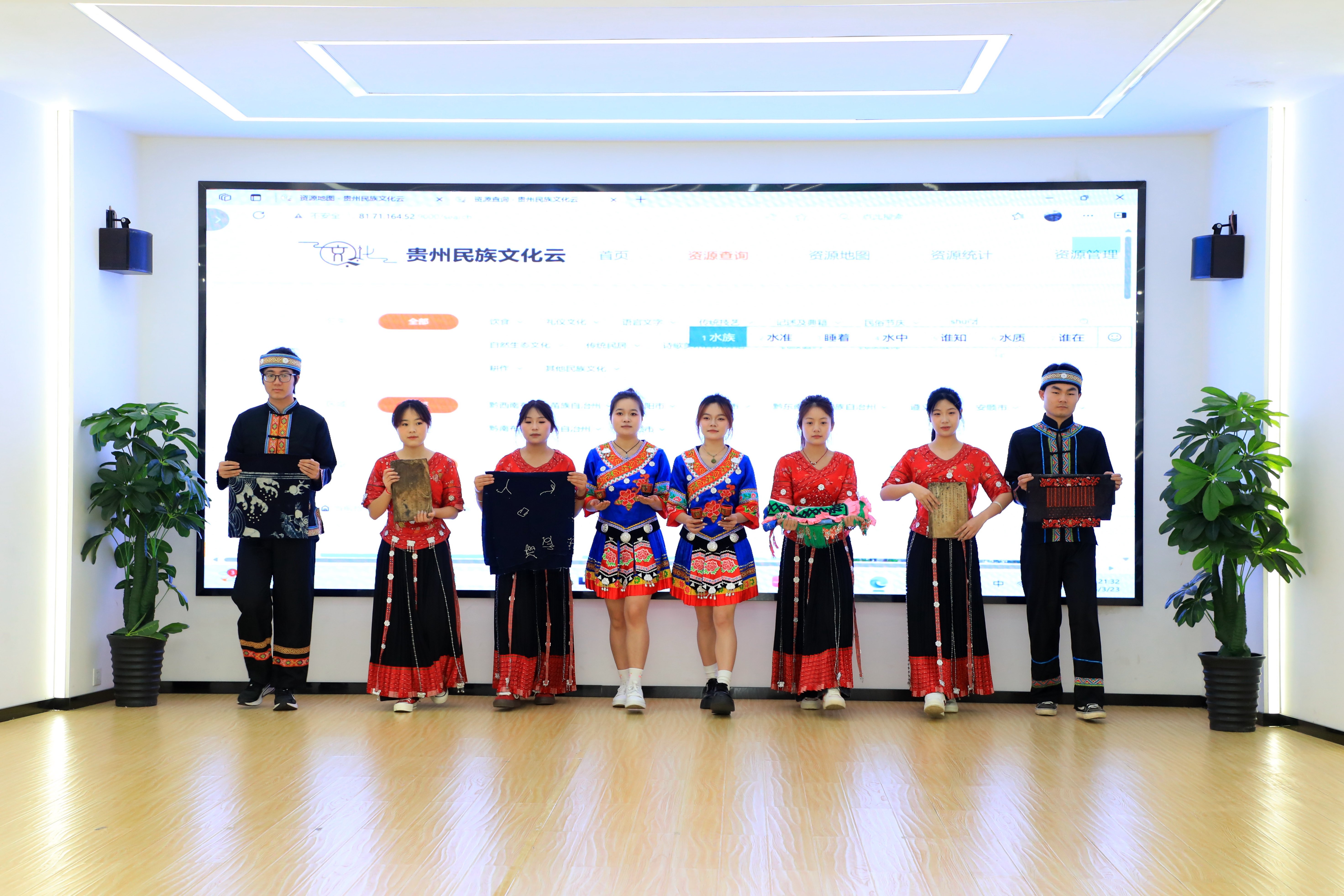 在“文化荟萃·青春担当”环节中,苗族的苗绣、蜡染、水族的水书、布依族的传统服饰以及彝族的漆器次第登台展示。通过民族服饰动态走秀、文书档案和漆器展示与电子展演相结合,向师生们直观展示了档案学在非遗数字化保护中的重要作用。现场还进行了以“档案学专业如何助力非遗传承”为主题的思考讨论与快问快答互动,充分体现了新时代档案青年在文化传承中的专业担当与使命意识。