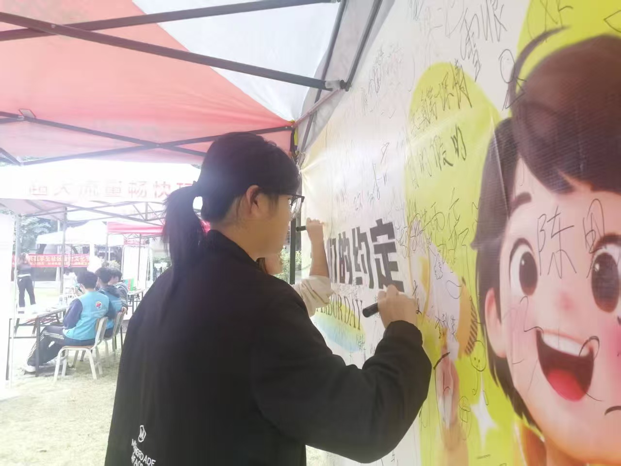 一纸公约,承载着一份承诺。在“我们的约定”活动环节中,同学们携手共同签署宿舍公约,积极为营造和谐的宿舍“小家”氛围贡献自己的智慧和创意。在那充满创意的签名墙上,一个个名字凝聚在一起,化作了对文明宿舍的共同期盼。