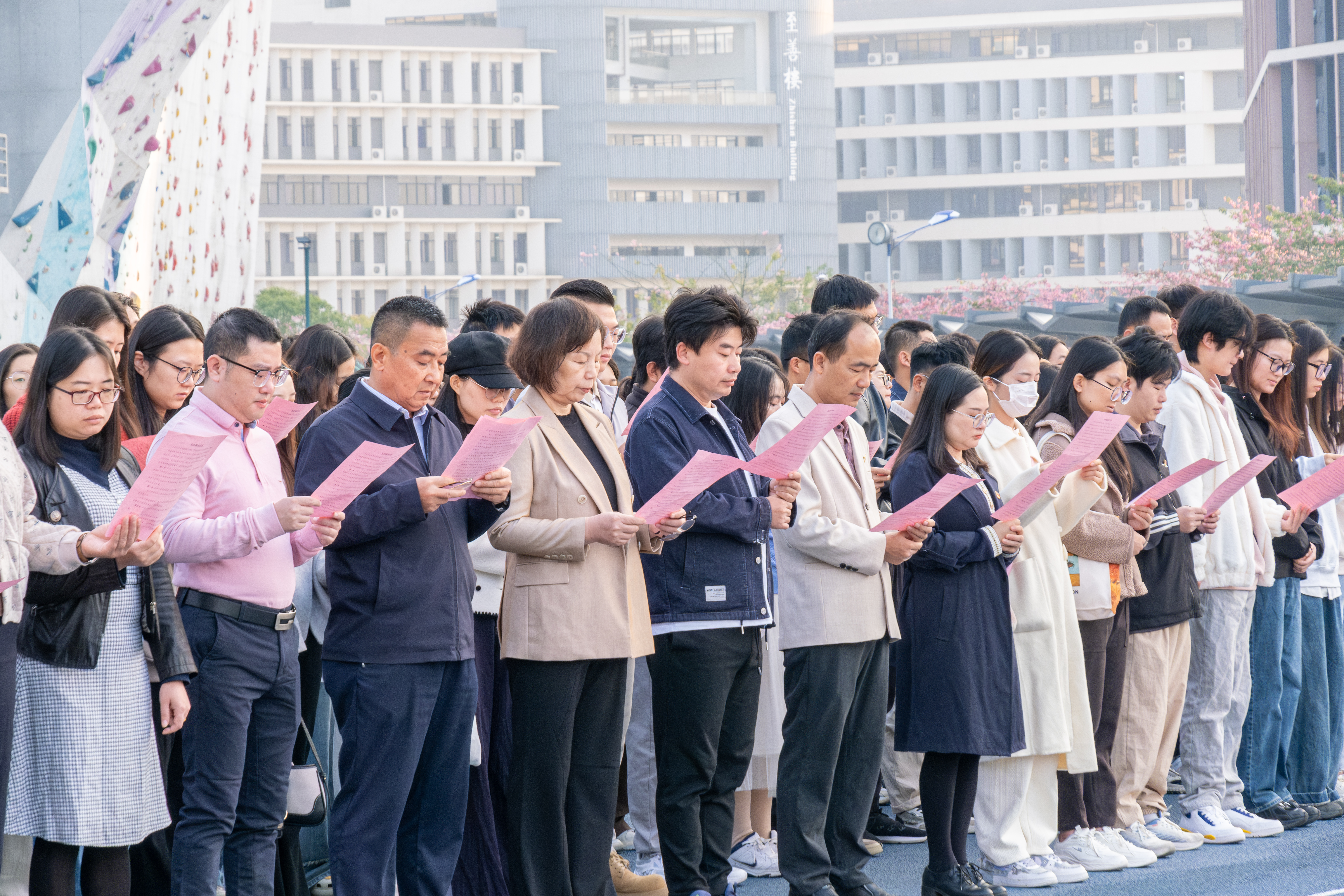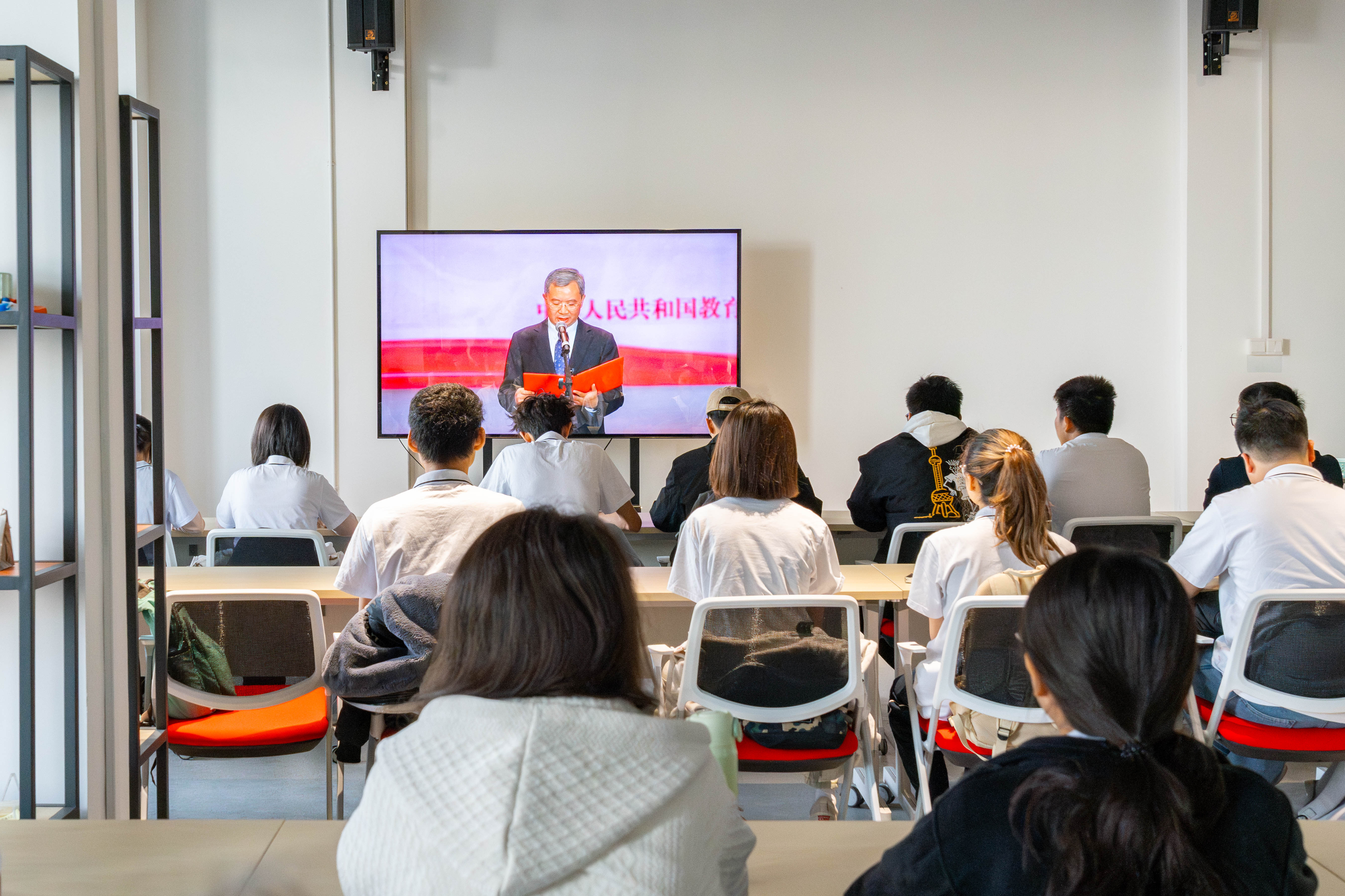 宪法日当天早晨,学校党委书记陈光团书记、刘志新副书记在升旗仪式现场,带领师生代表齐声诵读宪法条例。同时,在各教室内,党委学生工作部组织24级学生开展“宪法早读”,认真朗读宪法条文,学习宪法,理解宪法。