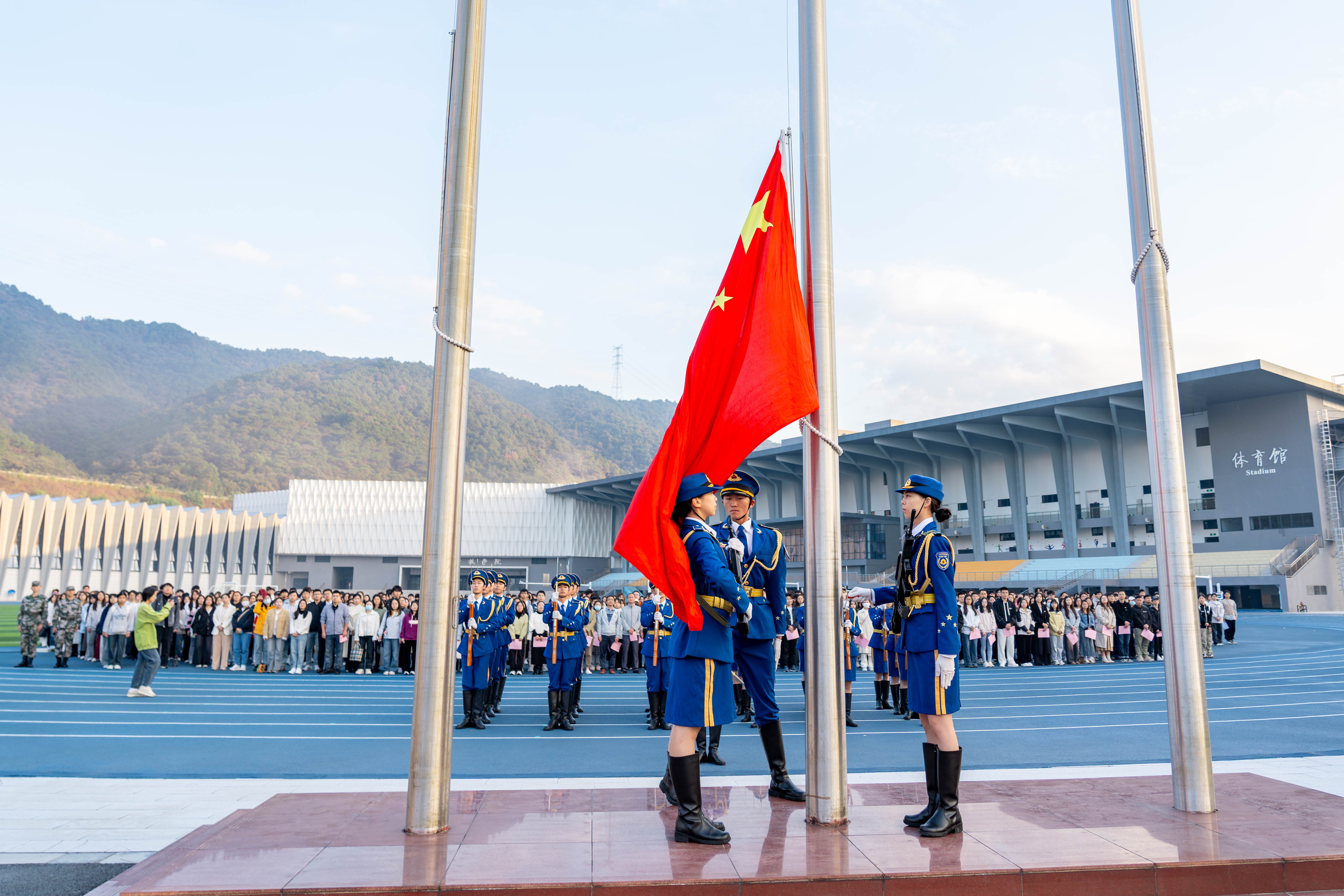 为深入贯彻习近平法治思想,加强宪法宣传教育,12月4日上午7时30分,党委学生工作部组织师生代表,在运动场升旗台前举行了国家宪法日升国旗仪式。学校党委书记陈光团、党委副书记刘志新、党委宣传部部长李帆、学生工作部部长胡斌,以及各二级学院党委书记和师生代表参加升旗仪式。伴随着雄壮的《义勇军进行曲》,全场师生肃立,高唱国歌,鲜艳的五星红旗冉冉升起。
