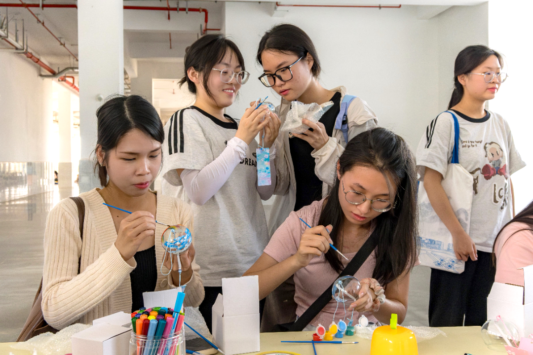 活动缤纷多元精彩绽放开幕式结束后,社区文化创意活动火热举行。心灵团辅体验、创意绘画展览等多元趣味活动精彩呈现。这些精心设计的环节,旨在让学生构建“学、劳、赛、展”四维一体架构,将持续深化党建引领,推动队伍入驻、学生参与、文化建设、数字赋能与条件保障工作,全力为学生全面发展和个性成长搭建广阔舞台,在艺术创作中释放压力,同时促进同学间的互动交流。