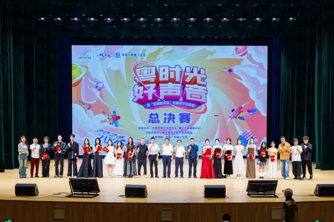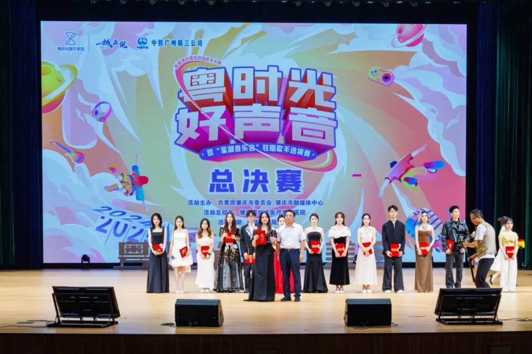 为丰富肇庆高校校园文化生活,挖掘培养青年音乐人才,促进校际艺术交流,6月6日下午,由共青团肇庆市委员会、肇庆市融媒体中心主办的“粤时光·好声音”首届肇庆高校校园歌手大赛暨“星湖音乐会”驻唱歌手总决赛在广州应用科技学院莲花大剧院举行。广州应用科技学院党委书记陈光团、肇庆市融媒体中心主任谢政,共青团肇庆市委员会副书记张震,中铁广州局第三工程有限公司肇庆区域经理张冀德,恒裕城粤时光医疗美容总经理梁锋等领导出席活动并为获奖选手颁奖,大赛特邀中国音乐家协会会员、广东省优秀音乐家、声乐副教授张春阳,资深独立音乐人官才,资深音乐人、声乐教师刘恩林,青年海归音乐人、声乐教师方盈,肇庆市融媒体中心《民生007》主持人、编导卓明五位担任评委。在活动主办单位的支持指导下,我校积极承办本次活动选拔赛和决赛,学校团委统筹赛事落地,广应科有超过70位同学踊跃报名参加本次赛事。