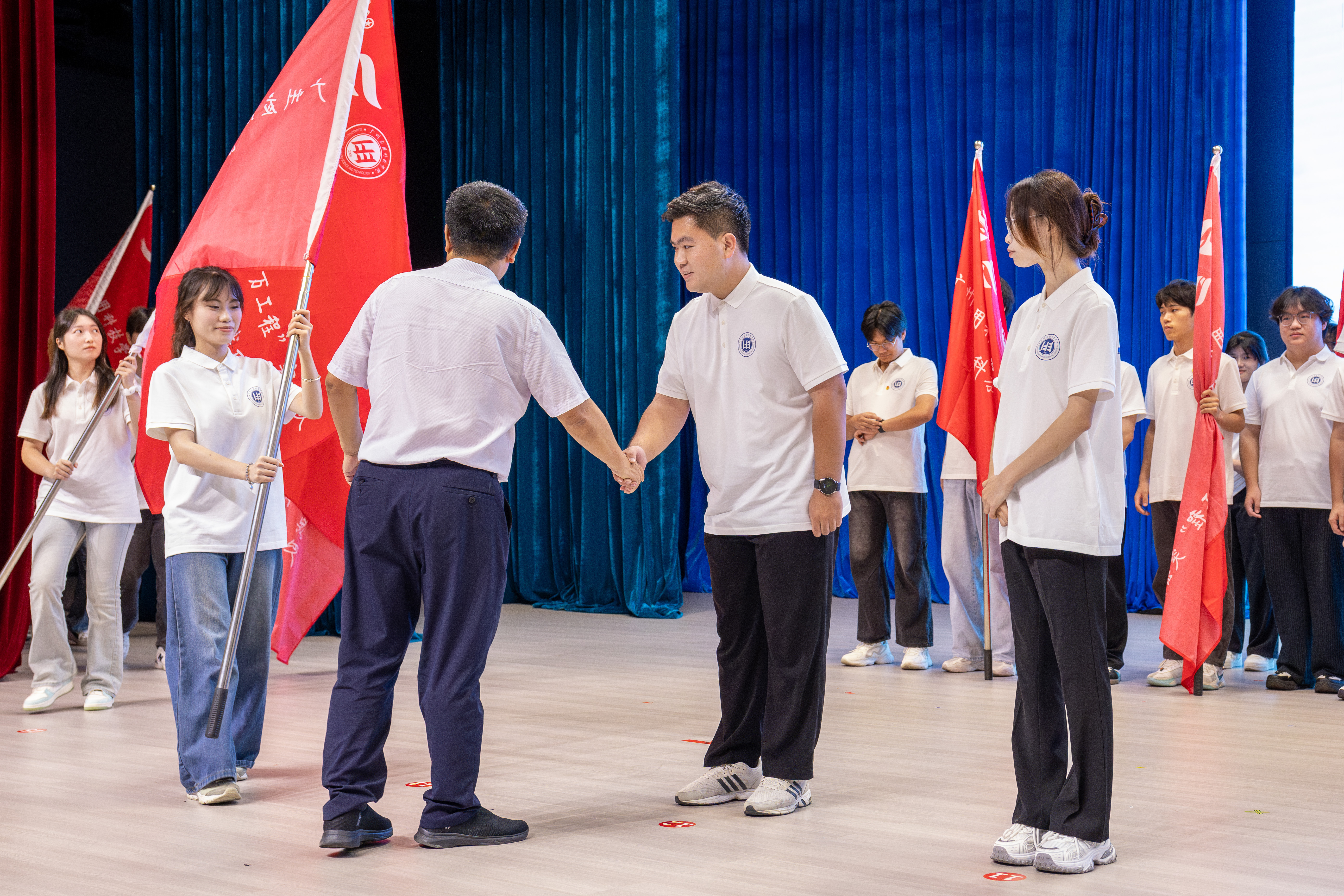 授旗明方向,青春赴使命。出征仪式上,广州应用科技学院党委书记陈光团代表学校为2025暑期“三下乡”社会实践的54支队伍授旗。接过旗帜,肩负使命,鲜红的旗帜在手中挥舞,象征着广应科学子投身基层、服务社会的决心,也标志着本次暑期“三下乡”活动正式拉开序幕,他们将带着广应科的期望,奔赴乡村振兴一线。