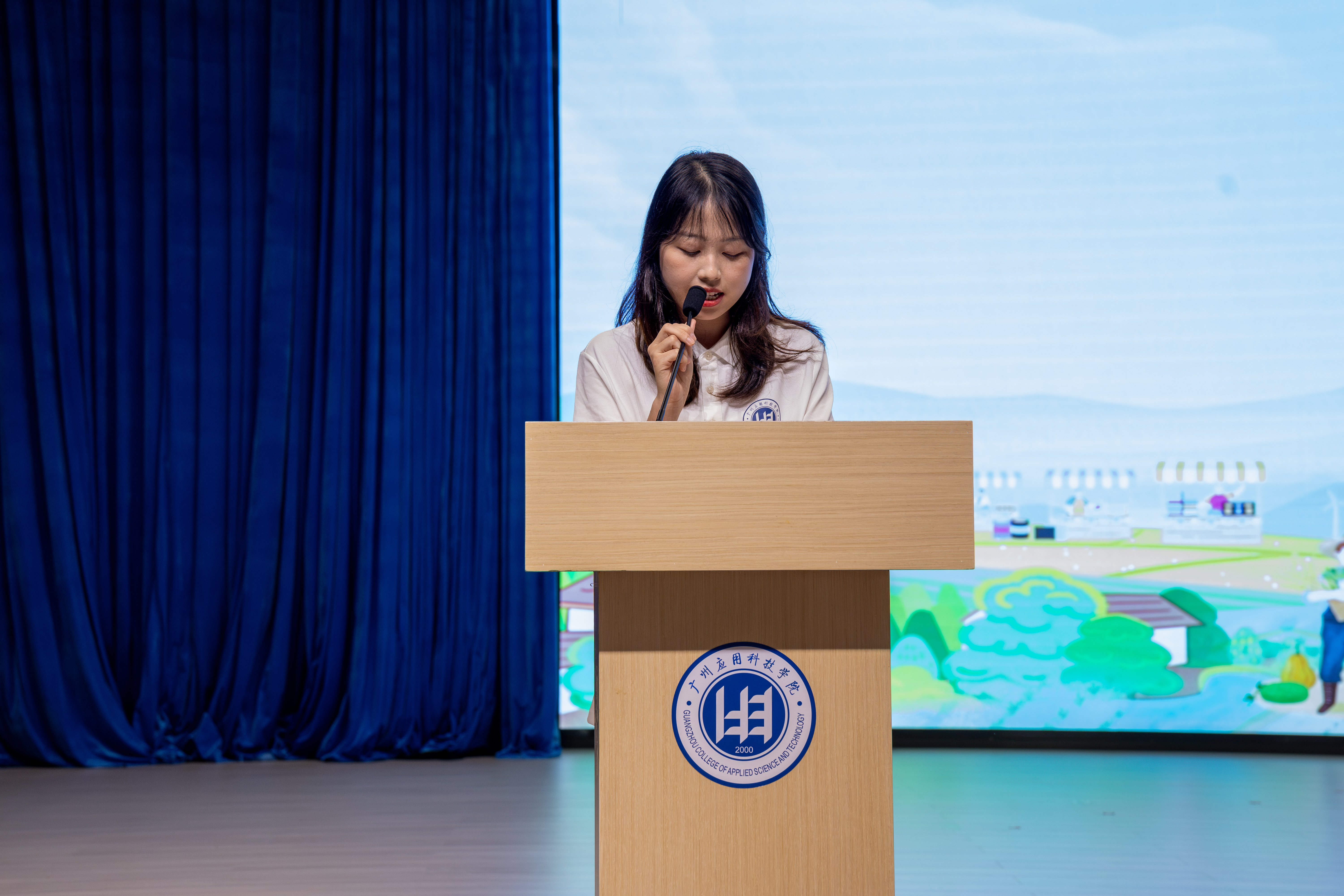 经济与管理学院陈伊琳同学作为“三下乡”活动学生代表发言。她所在的“儒韵红辉”实践队将前往阳江市阳西县儒洞镇,开展为期 7 天的实践活动。该团队已成功入选2025年团中央关爱行动“七彩假期”志愿服务团和全国大学生“两弹一星”精神志愿宣讲团。陈伊琳分享了团队关注当地留守儿童的初衷,并介绍了为孩子们准备的安全防护、健康生活、知识拓展三面“盾牌”。她表示,七天虽短,但团队将响应号召,在实践中积累经验、增长才干,为强国建设、民族复兴贡献青年力量,展现青年学子的担当风貌。