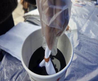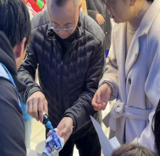 体验区内,一场场“布里生花”的奇妙旅程正在上演。在志愿者的悉心指导下,参与活动的市民朋友亲手实践,折叠、捆扎、浸染……每一个步骤都倾注着对传统技艺的好奇与敬意。素净的白布在染液中经过时间的浸润,呈现出千变万化的蓝白纹理,从自然的波纹到抽象的图纹,每一件作品都独一无二,蕴含着创作者的情感与巧思。志愿者们还积极融入现场氛围,观看公益演出,参与知识问答,以实际行动践行“奉献、友爱、互助、进步”的志愿精神,凝聚起向上向善的社会正能量。