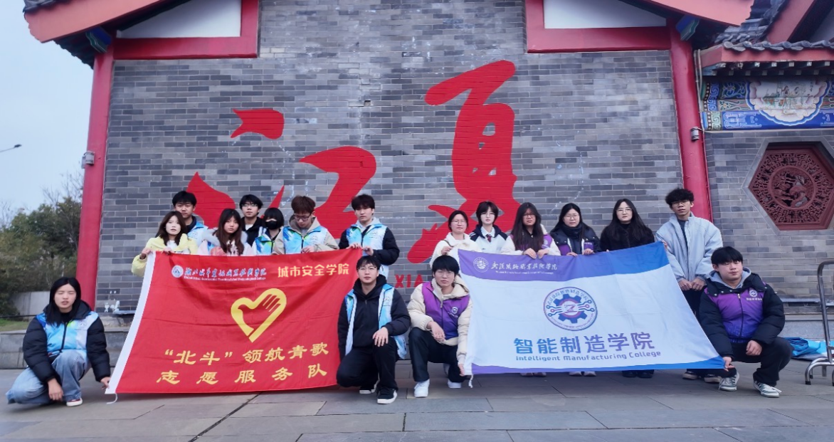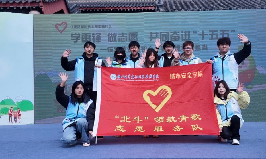 时值第63个学雷锋纪念日与第27个中国青年志愿者服务日交汇之际,3月4日上午,湖北城市建设职业技术学院城市安全学院“北斗”青歌志愿服务队走出校园,走进江夏区谭鑫培公园,深度参与江夏区2026年学雷锋活动月启动仪式暨公益市集活动。