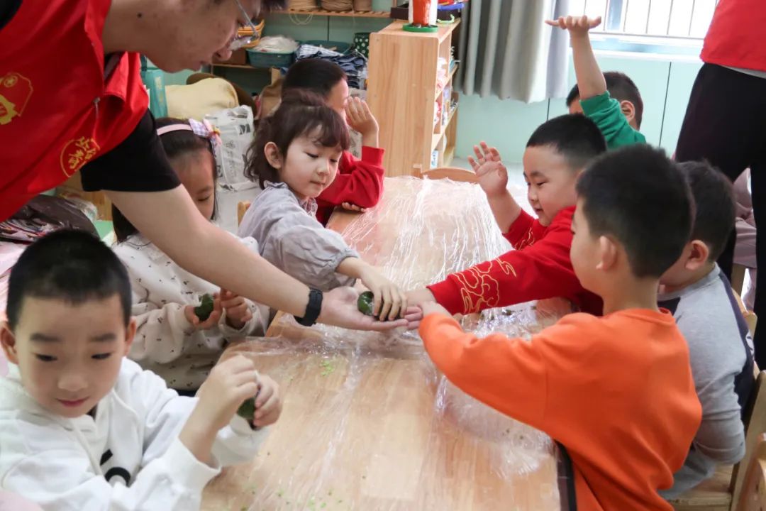 孩子们好奇地打量着艾草泥与糯米粉,小手虽稚嫩,却学得认真。当青团成型,满室艾草清香,欢声笑语回荡。