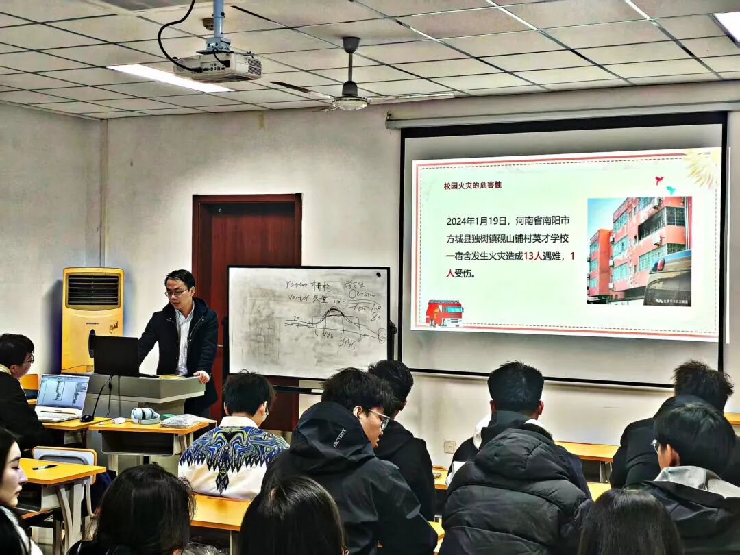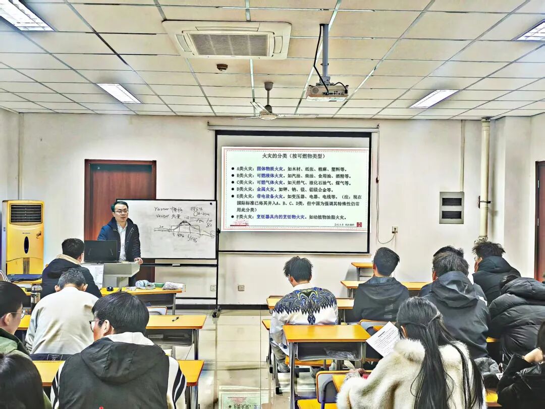 随后,他系统讲解了火灾分类、消防器材使用、火灾预防与火场逃生四大核心模块。通过对比不同类型火灾的处置方法,拆解灭火器“提、拔、握、压”操作口诀,演示消火栓使用流程,帮助同学们真正掌握关键消防技能。