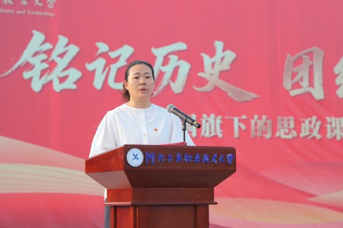 迎着初升的太阳,升国旗仪式正式开始,伴随着激昂的《义勇军进行曲》,鲜艳的五星红旗冉冉升起。马克思主义学院崔晓培老师从刚刚过去的中国人民抗日战争暨世界反法西斯战争胜利80周年盛大阅兵仪式,谈到中国人民经历的14年艰苦卓绝的抗日战争,强调历史不仅是记忆的延续,更是精神的传承。他用无数民族英雄的事迹,激励青年学子铭记民族苦难与英雄牺牲,勉励新时代青年更应挺膺担当,将爱国情、强国志融入日常学习与实践中,在实现中华民族伟大复兴的征程上赓续先烈遗志,团结奋进,书写属于这一代人的光荣。
