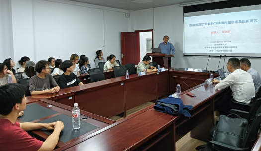 在上午的活动中,刘文军教授以“高性能紫外飞秒激光器”为主题,详细介绍了他在超快光学及技术应用基础研究方面的最新成果。刘教授长期致力于飞秒激光非线性效应的有效控制,通过创新性地提出“混合锁模”方案,成功提升了飞秒光纤激光的脉宽、功率和稳定性,他的研究成果不仅在国际顶级期刊上发表了200余篇SCI论文,而且部分成果已经实现了转化,为我国在飞秒光纤激光器领域的技术突破做出了重要贡献。刘教授还分享了他在国家自然科学基金项目申报方面的宝贵经验,为在场师生提供了有益的指导。