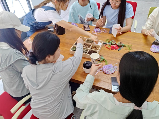 在中草药香囊制作区,药学院心理部的工作人员耐心地指导参与同学如何制作香囊,大家围绕摆满薄荷、薰衣草等十余种天然香料的桌台,根据需求自由搭配。有人挑选檀香、丁香助眠;有人组合艾草、藿香驱蚊。将研磨好的香料装入精美刺绣布袋,草药清香萦绕指尖。在与传统草药的亲密接触中,在轻松愉悦的氛围里悄然消解了同学们的压力,大家捧着亲手制作的香囊,脸上洋溢着成就感与喜悦。