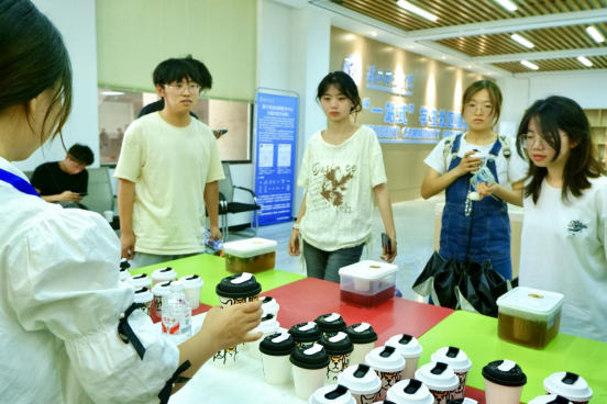 在中草药饮品区,药学院心理部的甘妮与陈蓉同学热情地向大家讲解金银花茶、广式凉茶、巴西梅粉等饮品的功效与特色,从清热去火到舒缓情绪,细致的科普引得同学们频频点头,在品尝中感受草本养生的独特魅力。