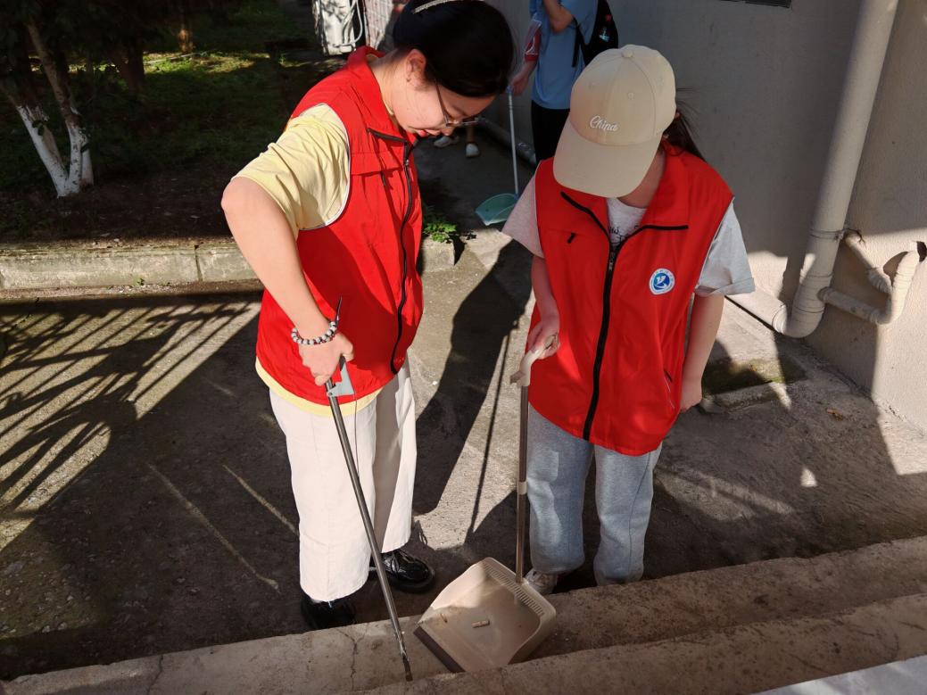 活动现场,同学们热情高涨,分工明确。他们手持扫帚、抹布等清洁工具,对社区楼栋过道、宿舍走廊、楼梯、休闲角落等公共区域进行全面清扫,不放过任何卫生死角。面对停放杂乱的自行车,同学们主动整理,将车辆有序摆放,拓宽过道空间,消除安全隐患。经过大家的辛勤劳动,社区面貌焕然一新,整洁明亮的环境让同学们倍感舒心。