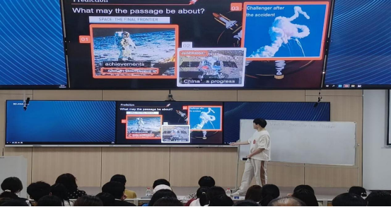 比赛中,选手们各展所长,教学风采尽显。陈灯同学作为第一名决赛选手,他巧妙运用NASA探月视频、动态星轨PPT和火箭造型板书,配合标准英音,将宇宙知识转化为一次生动“Space Exploration”课堂体验。李志奎与魏烨芊同学则聚焦“the internet”主题。李志奎以趣味视频开场,幽默讲解点燃全场;魏烨芊则通过实例分析网络利弊,并创新引入AI生成的哪吒主题视频阐述观点。厉晨欣同学别具匠心,从簪花、京剧、打铁花等传统文化元素切入,深度解读泰山文化,呈现了一场精彩的“cultural heritage”盛宴,并分享了实用的学习方法。互动环节气氛热烈,同学们积极交流,纷纷表示拓宽了教学视野。