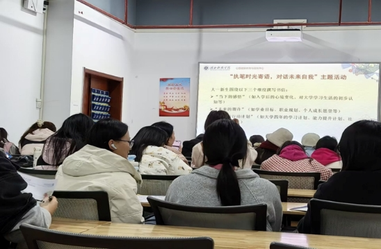 活动依托心理健康教育课程在各二级学院有序开展。学校为同学们准备了统一设计的信纸与信封,增强活动仪式感。书写现场安静专注,同学们围绕"当下感悟""未来期许"和"行动计划"三个维度,将入学体验、成长思考与生命探索落于笔端,完成了一次深入的自我对话。
