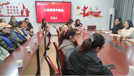 会上,公寓管理服务工作负责人专永安首先汇报了学校学生公寓的基本情况,涵盖楼栋分布、宿舍与床位数量、人员配置及日常运行状况,为后续科学决策和精准施策提供了详实数据支撑。公寓管理科科长孙凡结合学校《“一站式”学生社区党建工作方案》,深入阐释了“一站式”学生社区的建设内涵、阶段性成效及未来规划,并重点聚焦楼管员向“社区辅导员”角色转型的必要性与实施路径,明确其在落实“三全育人”、服务学生成长成才中的新定位、新职责与新使命。