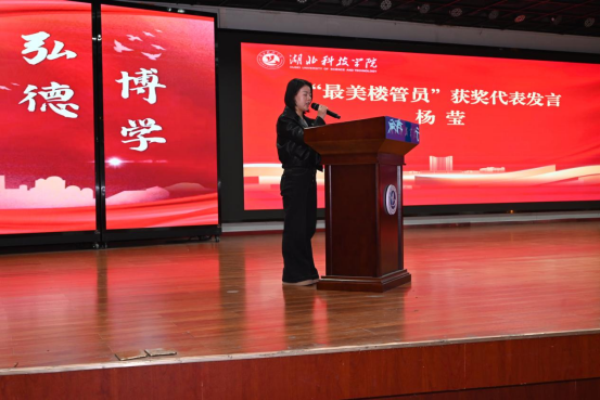 图为“最美楼管员”获奖代表杨莹老师发言