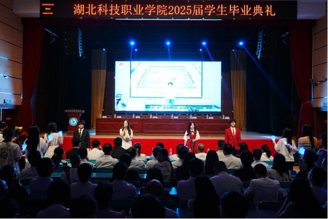 “笑一个吧,功成名就不是目的,让自己快乐这才叫作意义……”伴随着动人的歌声,大屏幕上闪过一帧帧2025届毕业生们在湖科的瞬间,晨读的教室、热闹的社团活动、操场上奔跑的身影、实训室熬夜备赛的灯光……当那句“热烈的不是青春,是青春的我们”从视频中响起,不少毕业生眼眶泛红,那些并肩追梦的超燃瞬间,在心底掀起层层涟漪。受邀出席的家长代表看着屏幕里孩子成长蜕变的轨迹,纷纷向学校致谢,言语间满是欣喜与感动。