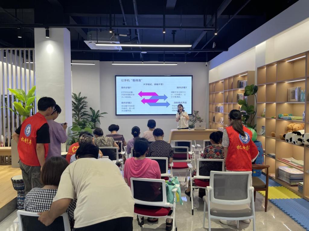 学院同样高度重视社区内老年人的生活需求,结合前期调查结果,省级党建工作样板支部机电工程学院教工一支部书记熊小艳赶赴金安岭社区,为社区的老年人上了一堂生动实用的智能手机使用课,课程设置特别涵盖了安卓和苹果双系统。课程针对老年人日常生活中最关心的就医、出行、防诈骗等内容进行了详细讲解,熊书记与志愿者们一起对在场老人提出的问题进行操作指导,确保大家能够听懂会用。现场不少人表示通过学习解锁了很多新的手机功能,使得自己今后的生活更加方便。