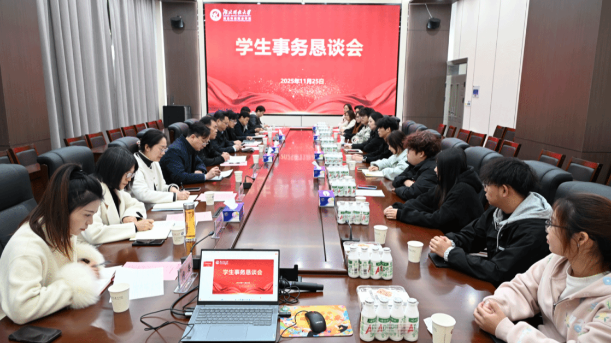 为精准对接学生成长需求,有效解决学生实际困难,全力护航学生成长发展,11月25日上午,学校召开2025年学生事务恳谈会。校长陈志祥、副校长周得力、学工部、保卫部、团委、教务处、招生就业处、基建处、图书信息中心、后勤服务中心等职能部门负责人以及来自各学院的12名学生代表参加会议,会议周得力主持。