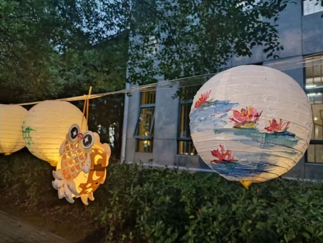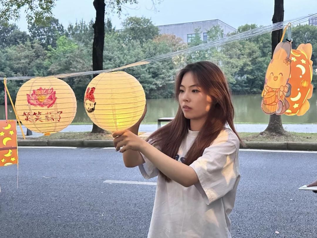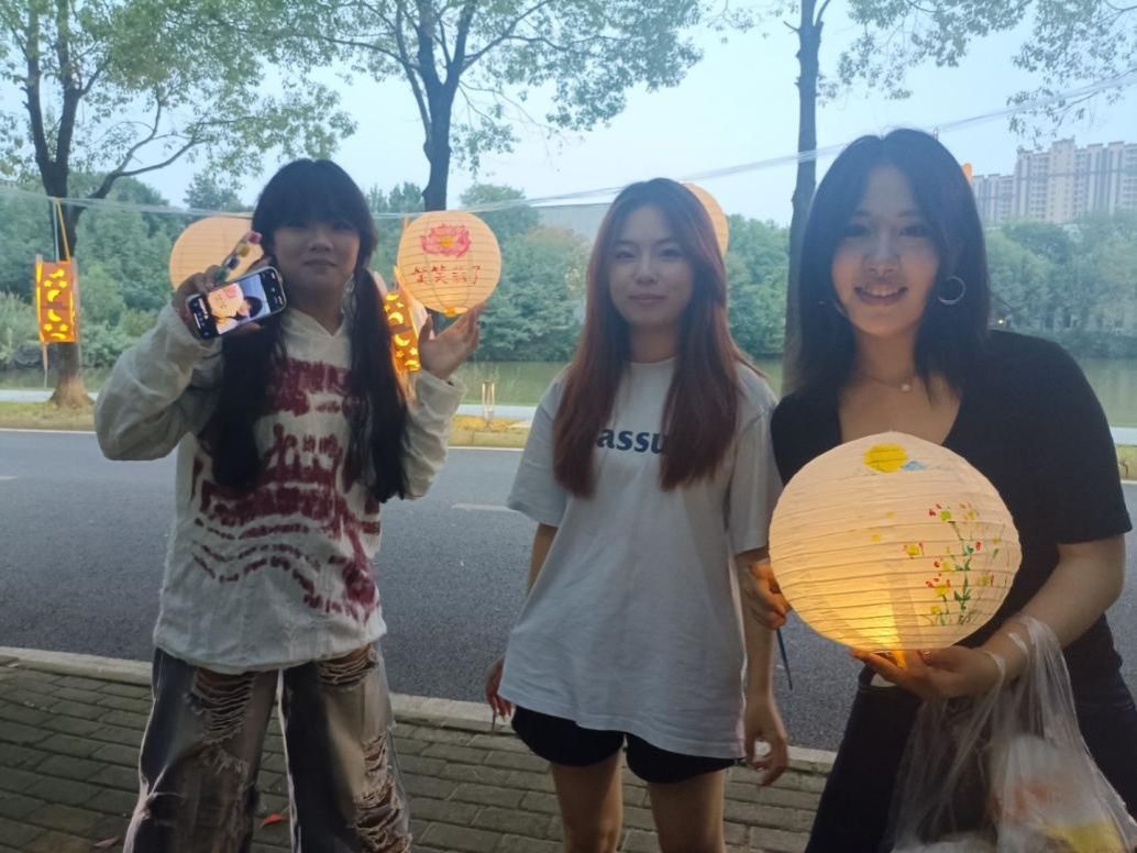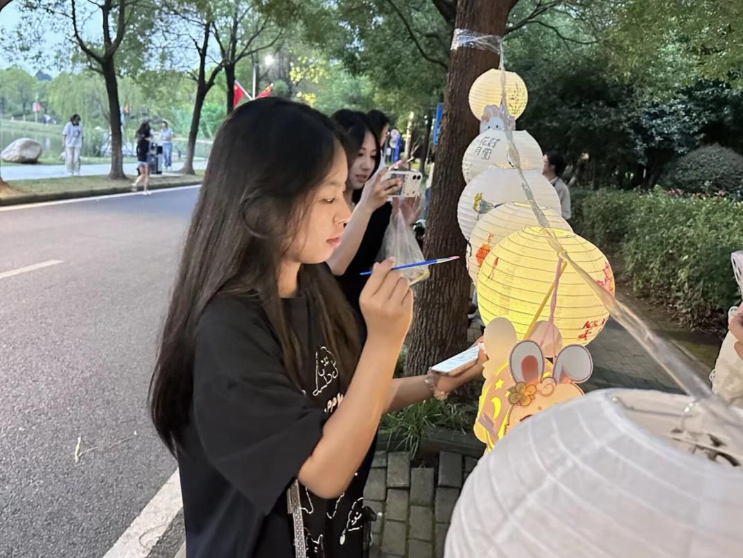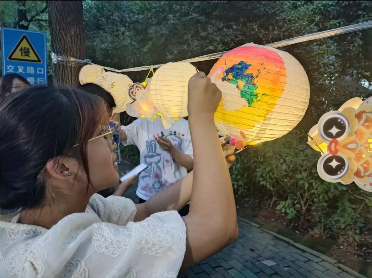 湖美学子在“一站式”学生社区手绘灯笼 共庆双节花好月圆