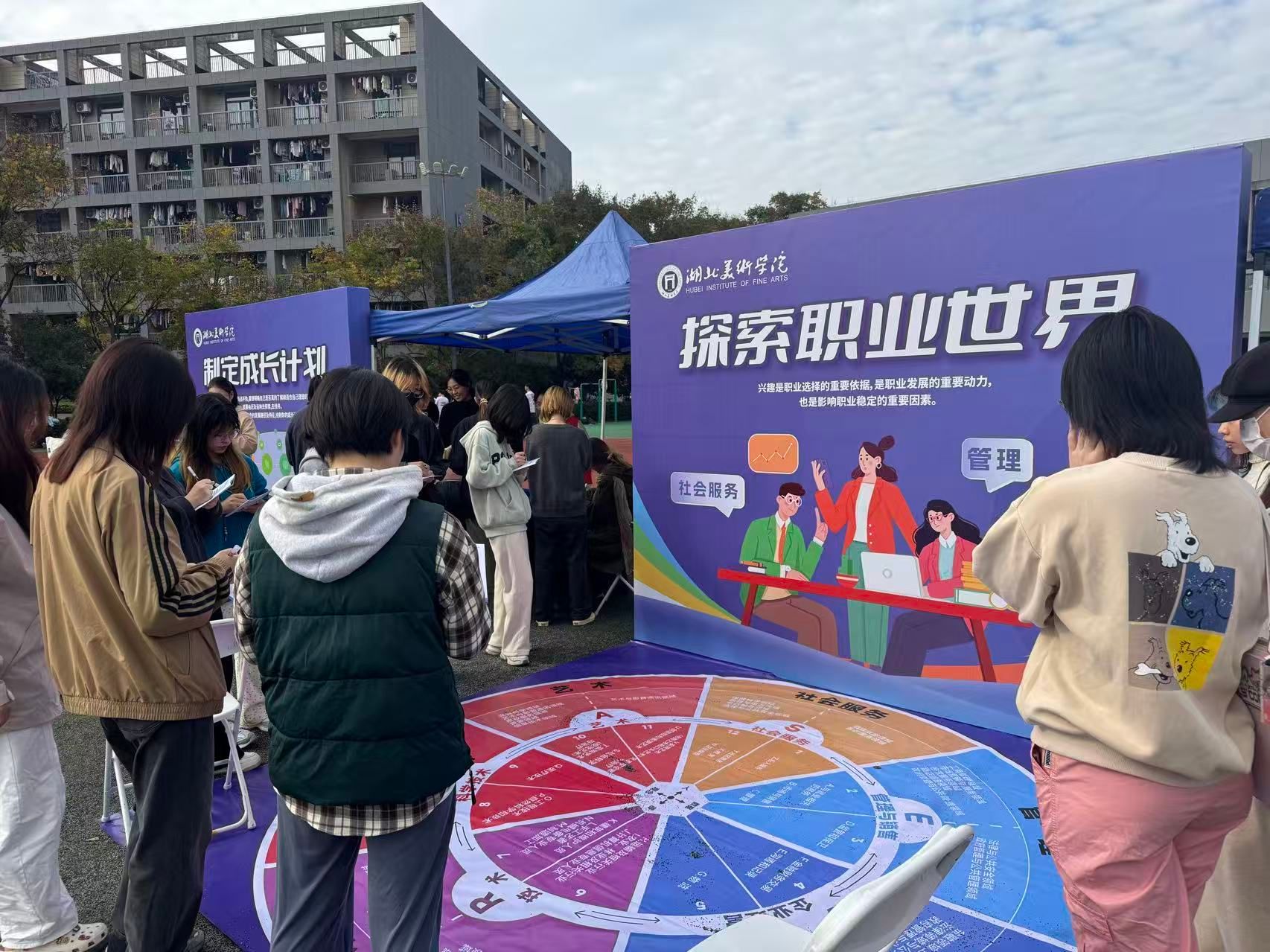 为增强学生生涯规划意识,提升综合竞争力,11月12日,学校在学生社区成功举办以“规划引领成长 行动铸就未来”为主题的首届生涯体验日活动。本次活动由招生就业处主办,绘画学院、视觉艺术学院协办,同时作为第三届全国大学生职业规划大赛的同期活动,采用体验式探索模式,深化生涯教育内涵,为学生带来一场内容丰富、形式新颖的生涯启蒙与实践盛宴。活动现场吸引800余名学生参与打卡,创下校内生涯教育活动规模新高。