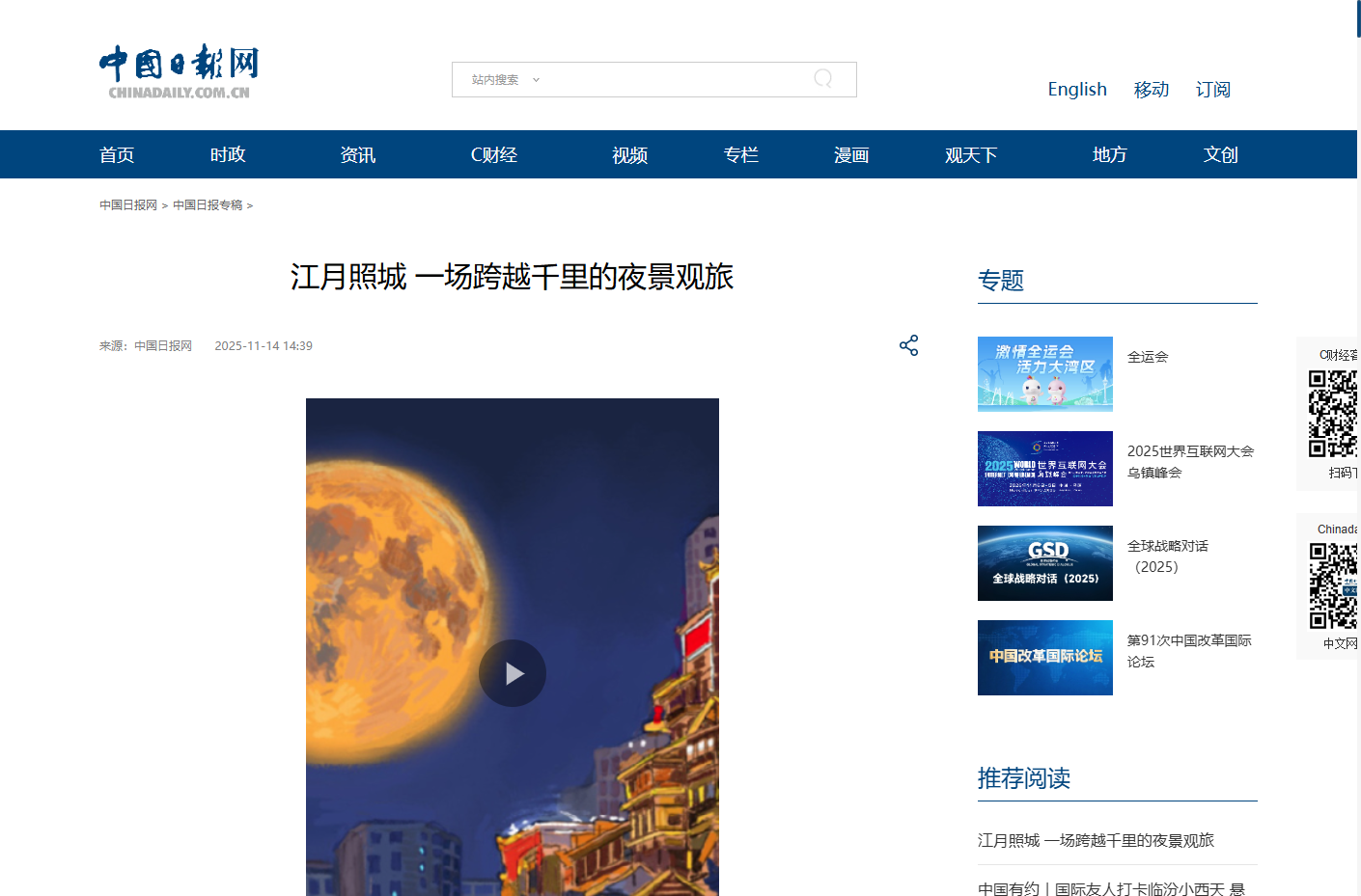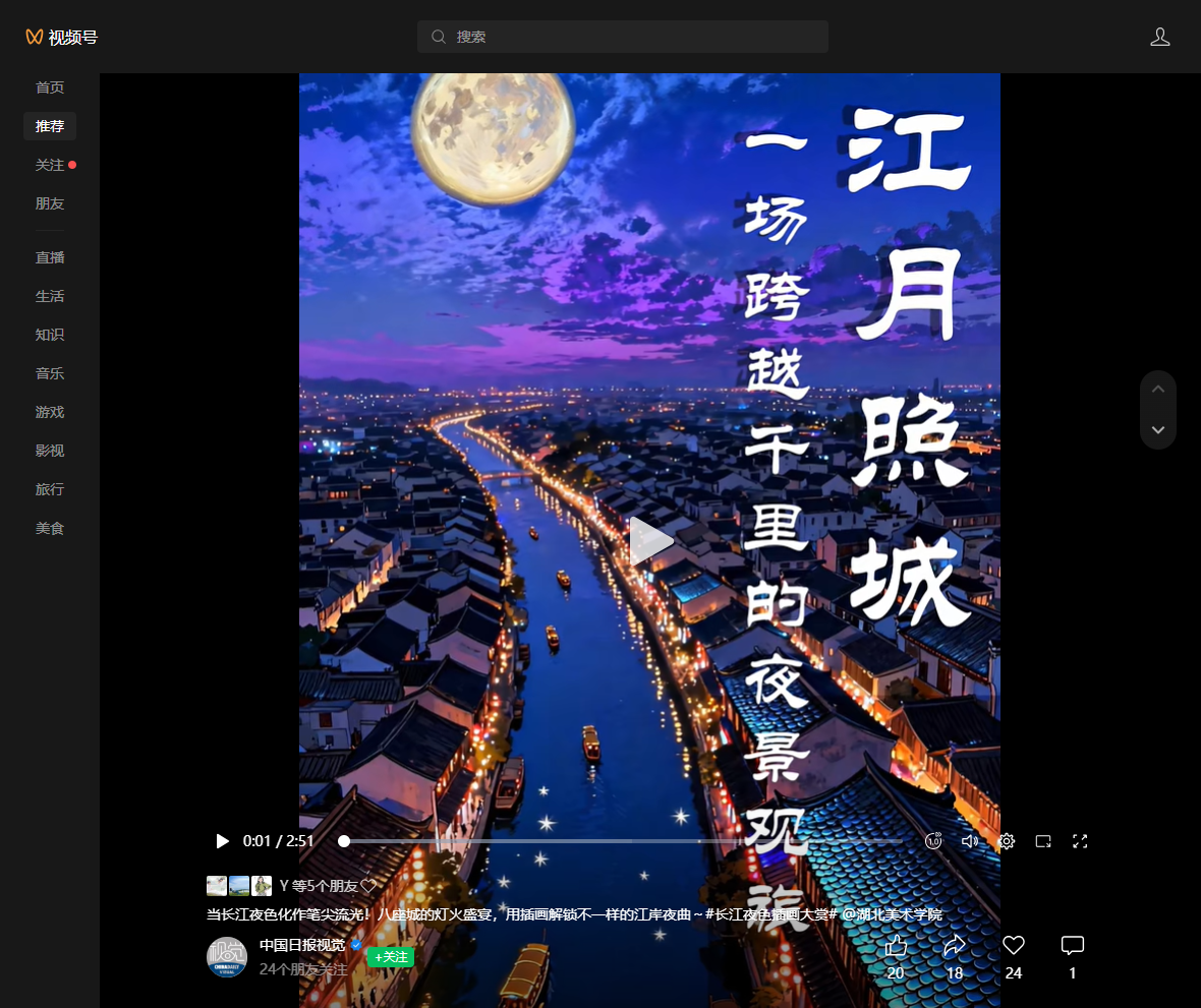 文化建设/影视动画学院师生作品《江月照城 一场跨越千里的夜景观旅》在中国日报等多媒体平台发布