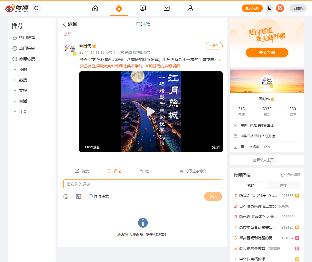 影视动画学院“动‘话’时代艺绘中国”工作室《长江生态与人文》系列第五期作品《江月照城 一场跨越千里的夜景观旅》在中国日报网、中国日报微信公众号、中国日报视频号、中国日报官方微博等多媒体平台发布。