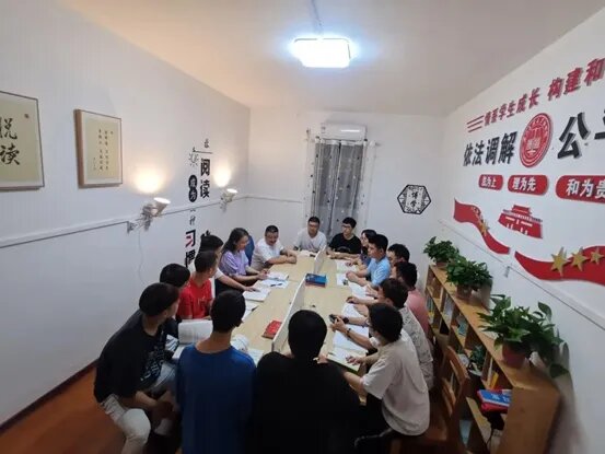 2. 资源整合上,运用“一站式”学生社区的矛盾调解室、润苗工作室、厚德学堂、法者读书会、微信公众号等阵地平台,划分党员责任区,提升学生自我管理、自我教育、自我监督、自我服务的能力水平。