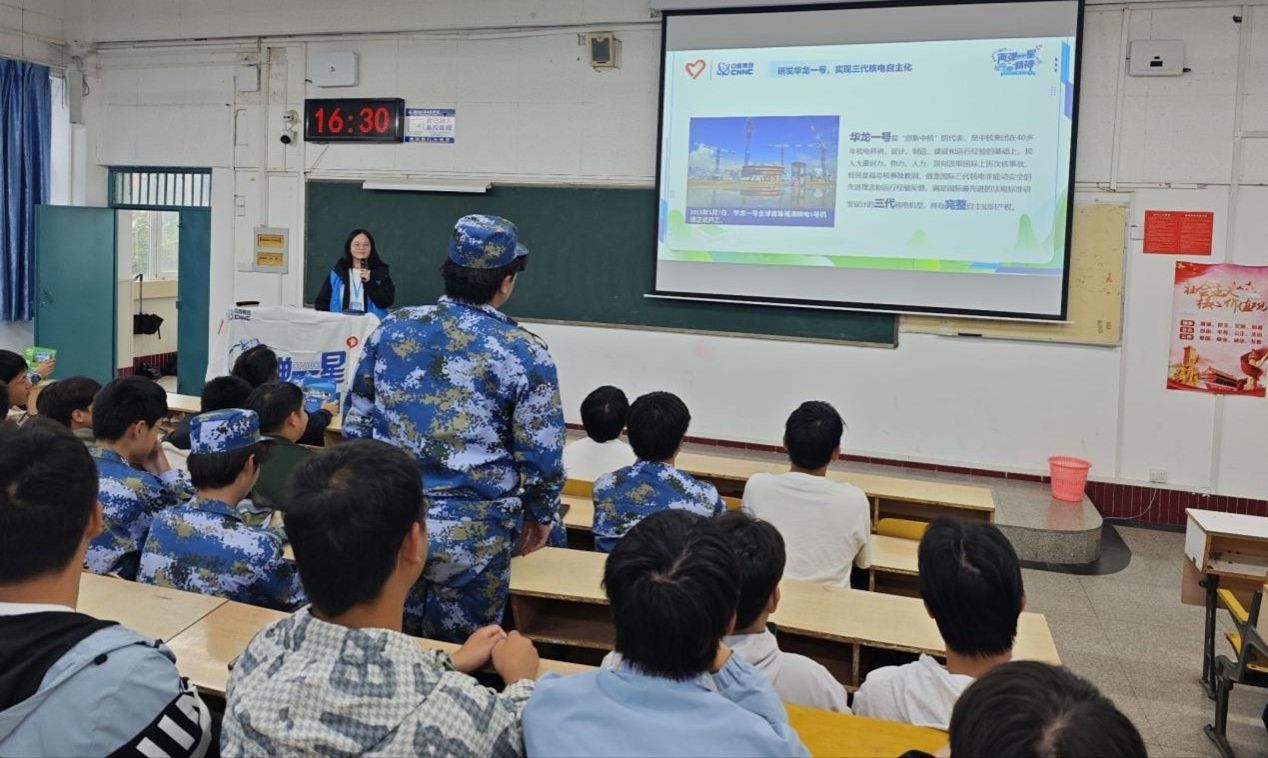 校园宣讲中,宣讲团以时间为线,讲述我国核工业发展历程,结合“双碳”战略解析核电价值,激发大学生科研热忱。国庆期间,成员张呈返生源高中,借模型、动画解析核电站原理,重点介绍“华龙一号”技术突破,点燃高中生专业兴趣。