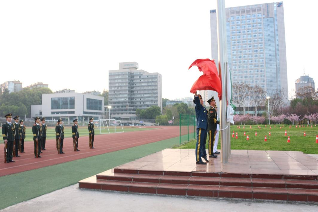 6时50分,升旗仪式正式开始。英姿飒爽的国旗护卫队迈着铿锵步伐护送国旗入场,“全体向后转!”的号令响彻广场,师生肃立凝望。伴随着雄壮的《义勇军进行曲》,五星红旗冉冉升起,全体师生齐声高唱国歌,目光中饱含对祖国的深情与自豪。