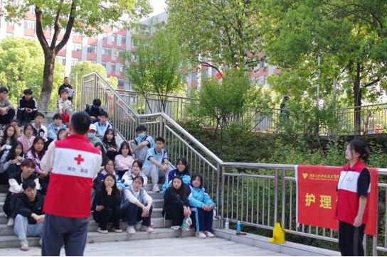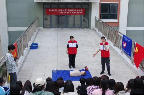 2023年3月30日下午,一场别开生面的急救知识宣讲在康佑社区侧面长廊展开,应经管学院邀请,康养与护理学院第二党支部和护理协会的部分成员为经管学院50余名楼层长进行了常见急救知识的讲解和示范,并邀请参与人员现场操练,现场氛围活跃热烈。