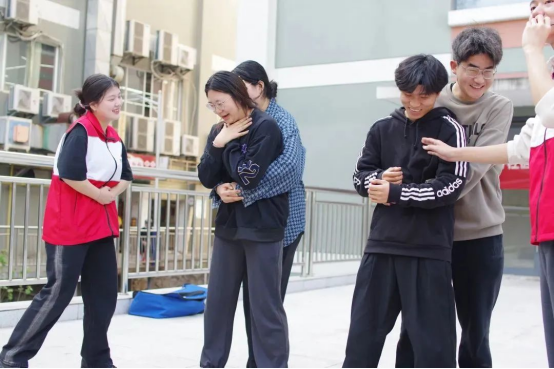 在详细的讲解和示范过后,邀请现场两组同学上台操练,看起来听起来容易的操作,做起来好像就不那么简单了,讲解员一边重复着:“剪刀石头布”、“向内向上”,一边纠正不规范的动作。