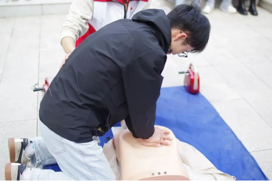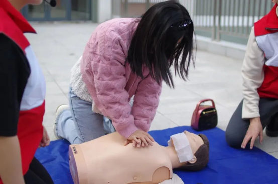 接下来,周宇林又从“什么情况下需要实施心肺复苏?”“心肺复苏的操作要点”等方面详细介绍了心肺复苏(CPR),并利用模型进行操作示范。