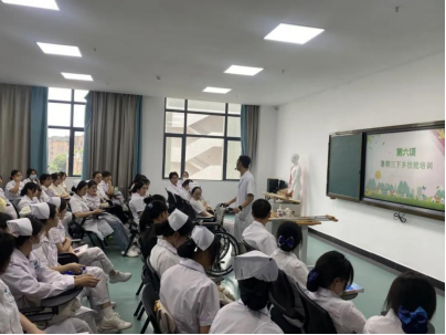 出征仪式结束后,学院专业教师胡升升就轮椅、手杖的使用注意事项等内容,给所有志愿者做了老年照护知识相关培训,希望大家在“三下乡”活动中尊重专业知识,安全为首、服务为重、提升为基。