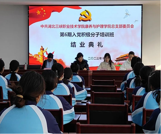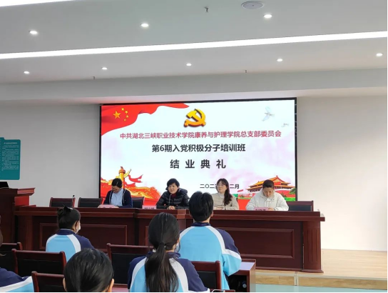 12月21日下午,康养与护理学院第6期(2023年秋季学期)入党积极分子培训班结业典礼在H-213多功能教室举行。党总支书记胡兴娥、第一党支部纪检委员陈未、第二党支部书记邵国媛、分团委书记刘晓青出席了结业典礼。典礼由邵国媛同志主持。