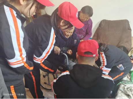3月27日,“健康巴士”志愿服务队走进宜昌市点军区双溪村偏瘫老人杨爷爷家中,给老人送去急需的轮椅,并将常用的偏瘫老人照护知识讲解给家人。