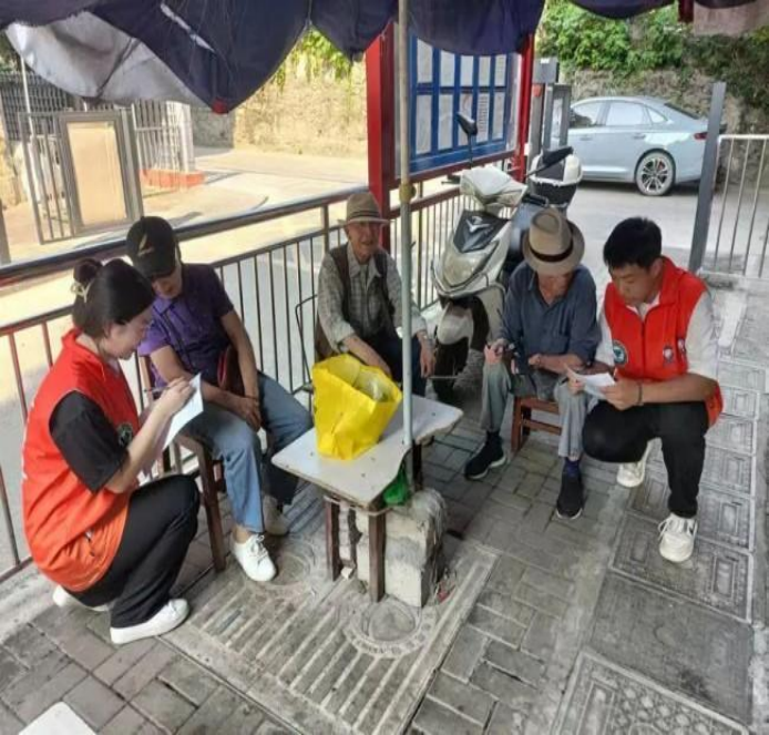 在社区网格员的带领下,志愿者分头走访光明路社区的11个网格点,以问卷调查的形式采访了社区180个老年人,共回收有效问卷153份。