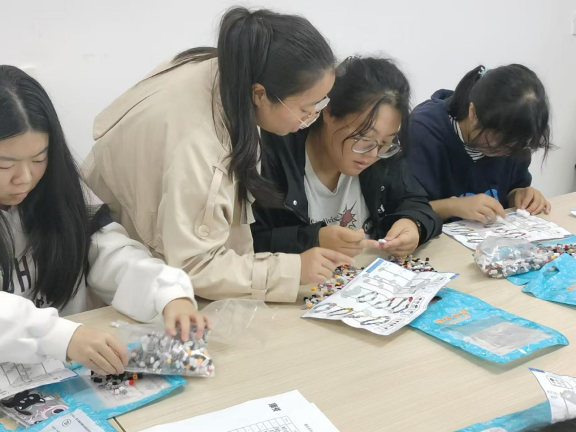 活动中,老师和同学们沉浸在积木的世界里,利用图纸解析共同协作,同学们都全神贯注的拼接着自己手中的积木,专注的神情,让人感受到了积木带来的无限乐趣,每一块积木都承载着她们的智慧和创意。