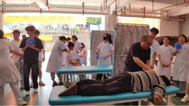在推拿展示区前,康养与护理学院院长、康复治疗技术专业带头人邓尚平老师耐心细致地展示推拿手法,详细讲解其中的奥秘及益处,让同学们对这一传统技艺有了更加深入的了解。