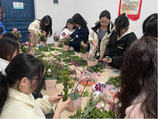 缤纷花材与灵巧双手相遇,瞬间绽放出独一无二的美。在专业老师的指导下,女生们亲手制作的花艺作品或清新淡雅,或热烈奔放,每一束都承载着对生活的热爱与自信的宣言。